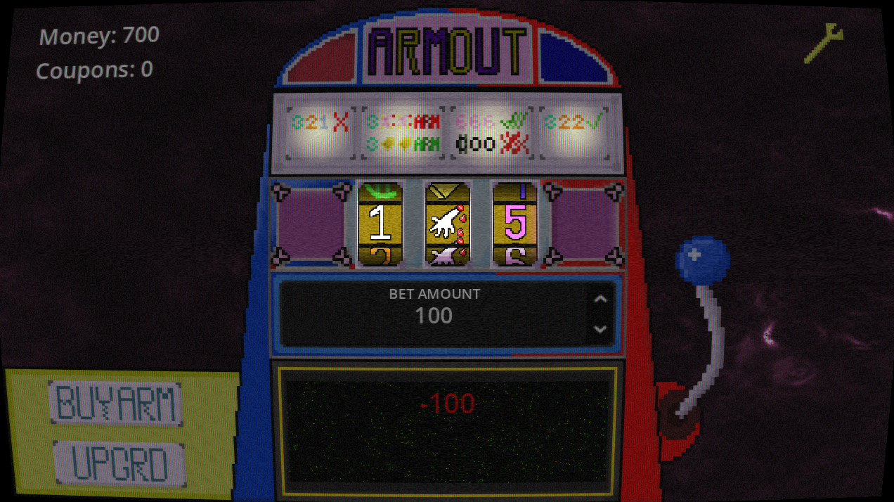 If you get two or more "Cut off hands" on the slots, you will lose an arm!!